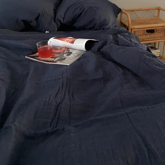 Dynebetræk i bomuld Mørkeblå 140x200cm