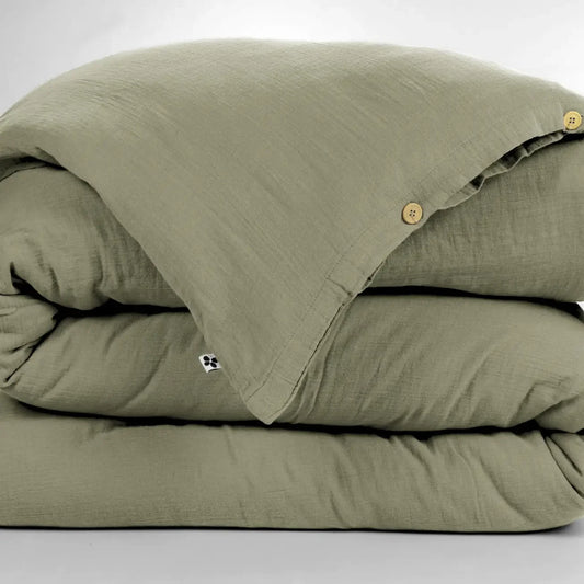 Sengesæt i Oliven grøn bomuld - 140x200, 60x60